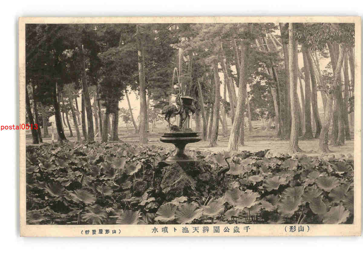 山形 千歳公園弁天池と噴水 *剥離有り