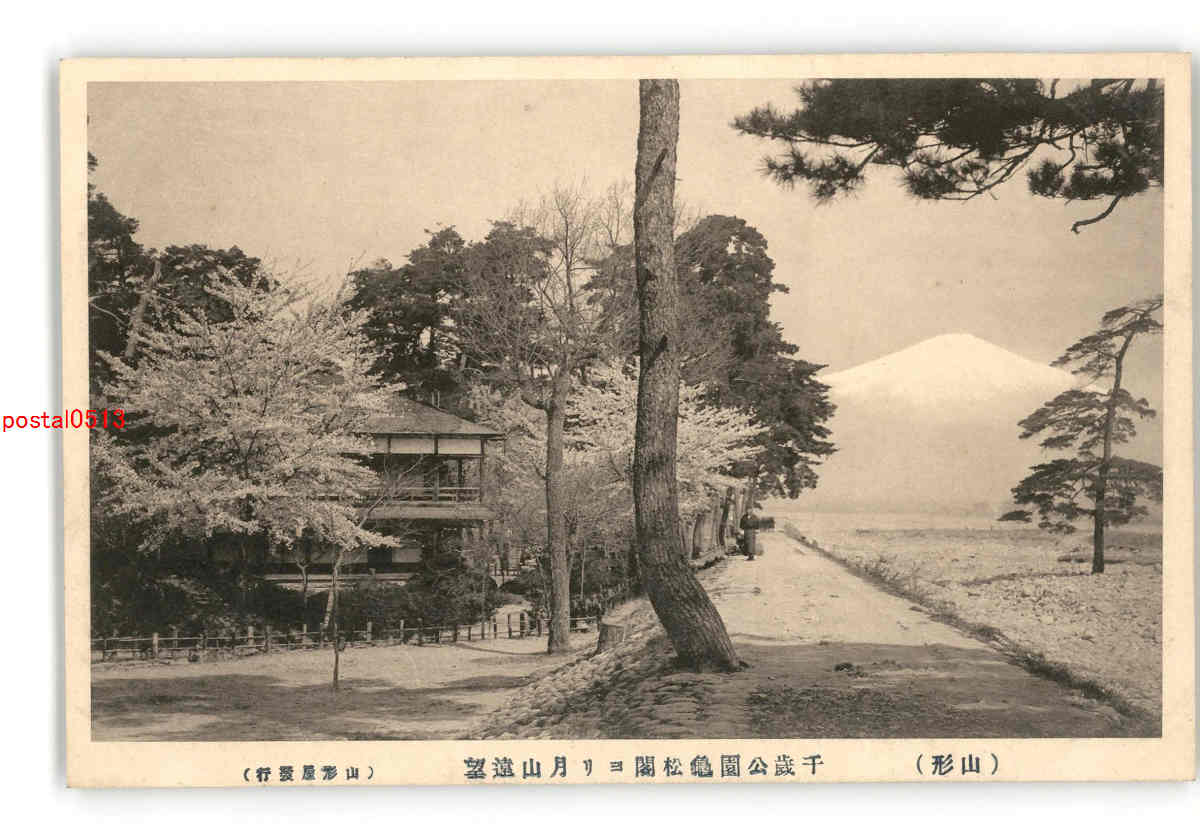 山形 千歳公園亀松閣より月山遠望 *剥離有り