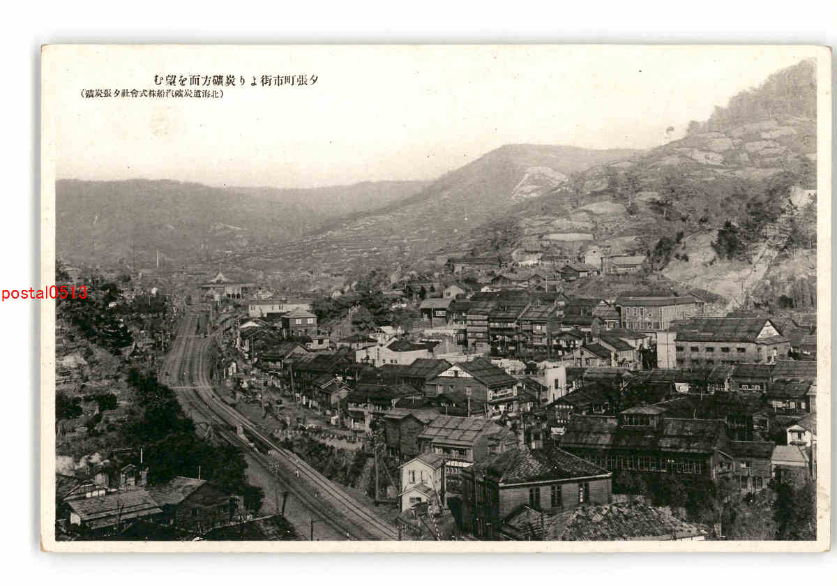 北海道 夕張町市街より炭砿方面を望む 北海道炭砿汽船株式会社夕張炭砿 *傷み有り