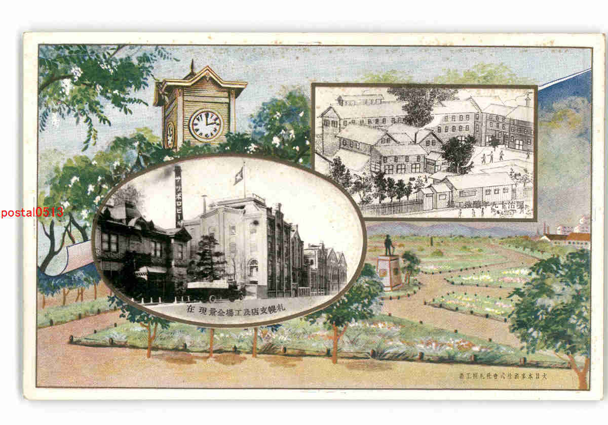 北海道 明治19年醸造工場 札幌支店及工場全景現在 大日本麦酒株式会社札幌工場 *傷み有り