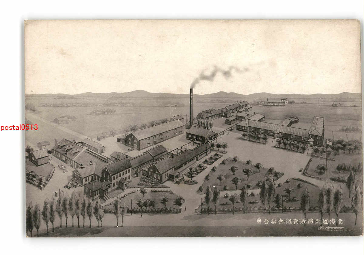 北海道 野付牛製線工場全景 構内33町歩 *折れ有り *傷み有り