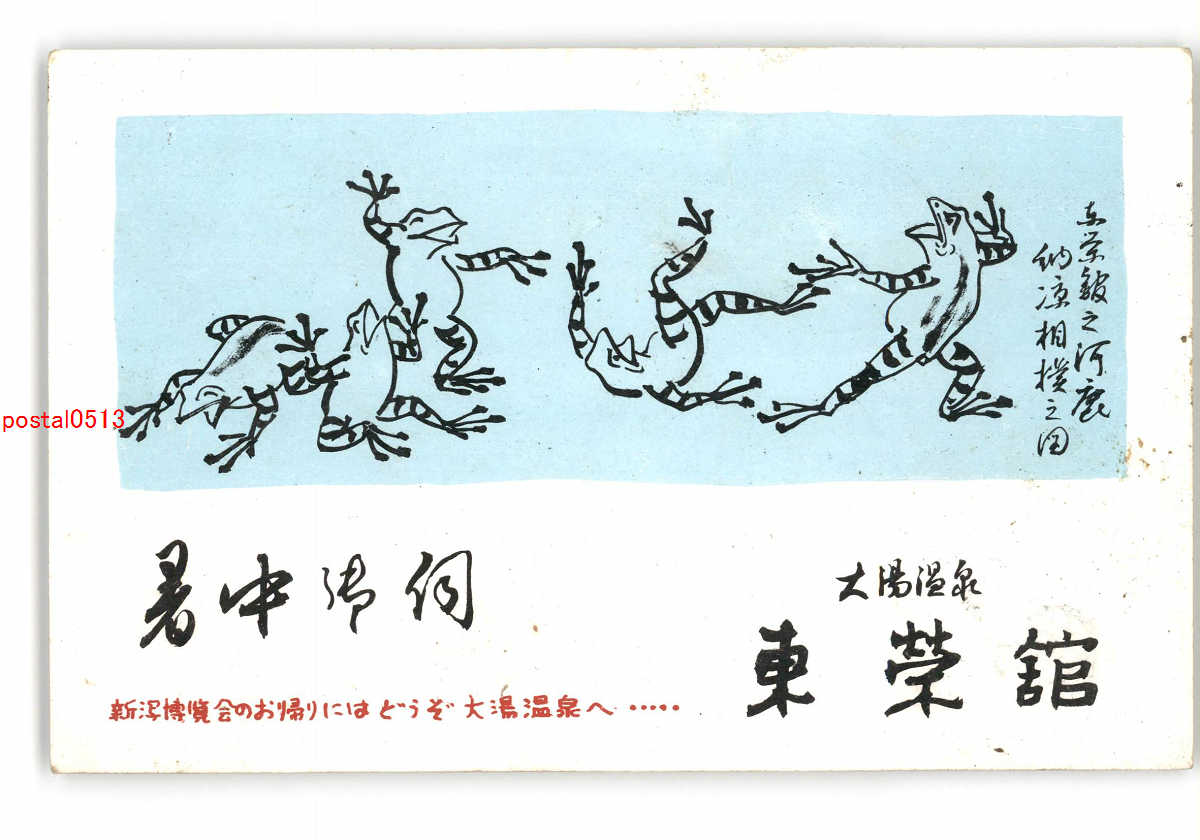 新潟 広告絵葉書 大湯温泉 東栄館 暑中見舞い *傷み有り