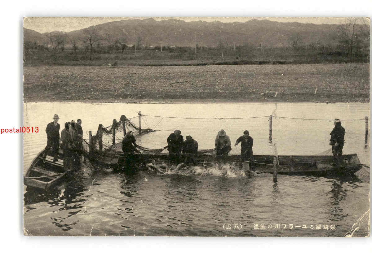 北海道 銀鱗躍るユーラフ川の鮭漁 八雲 *破れ有り *傷み有り
