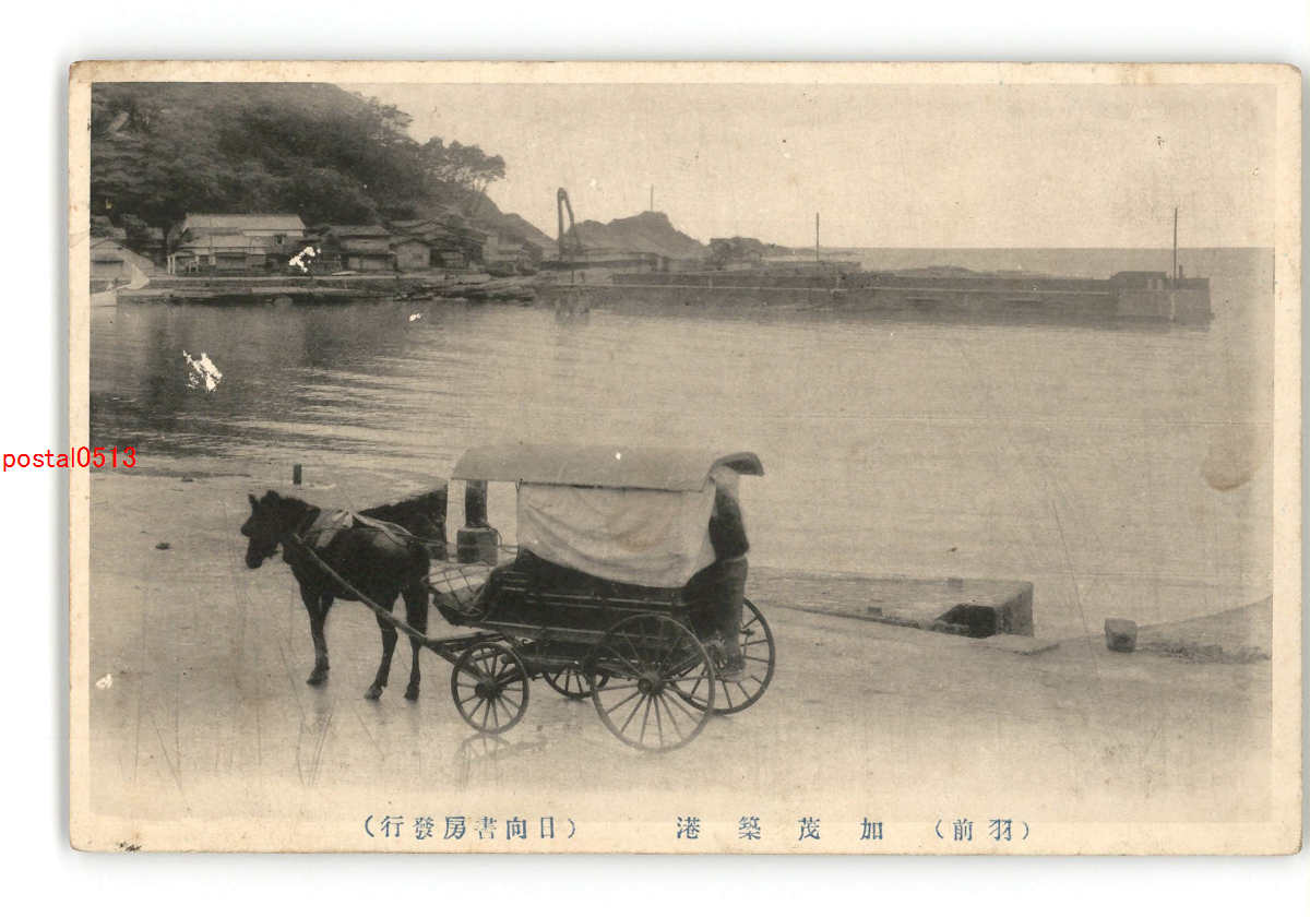 山形 羽前 加茂築港 馬車 *剥離有り *傷み有り