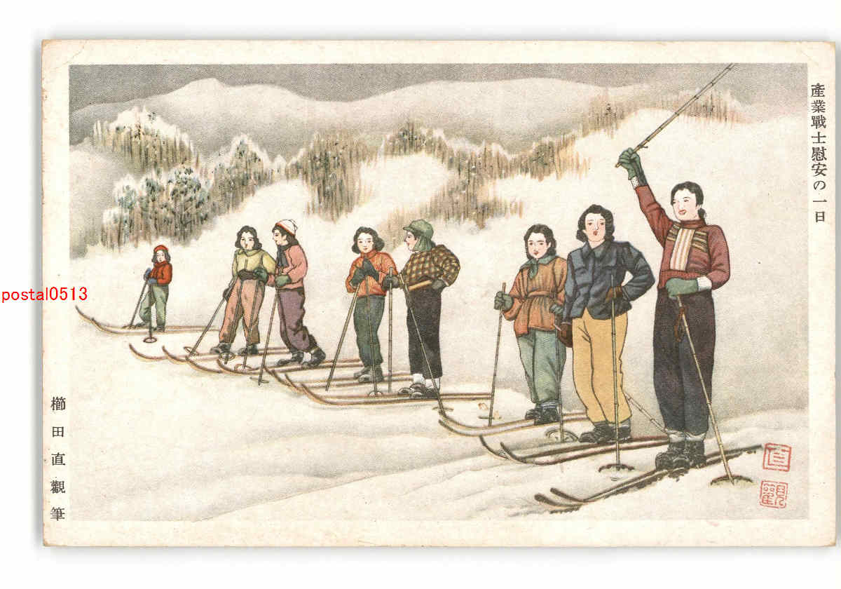 産業戦士慰安の一日 櫛田直観筆 *折れ有り *傷み有り