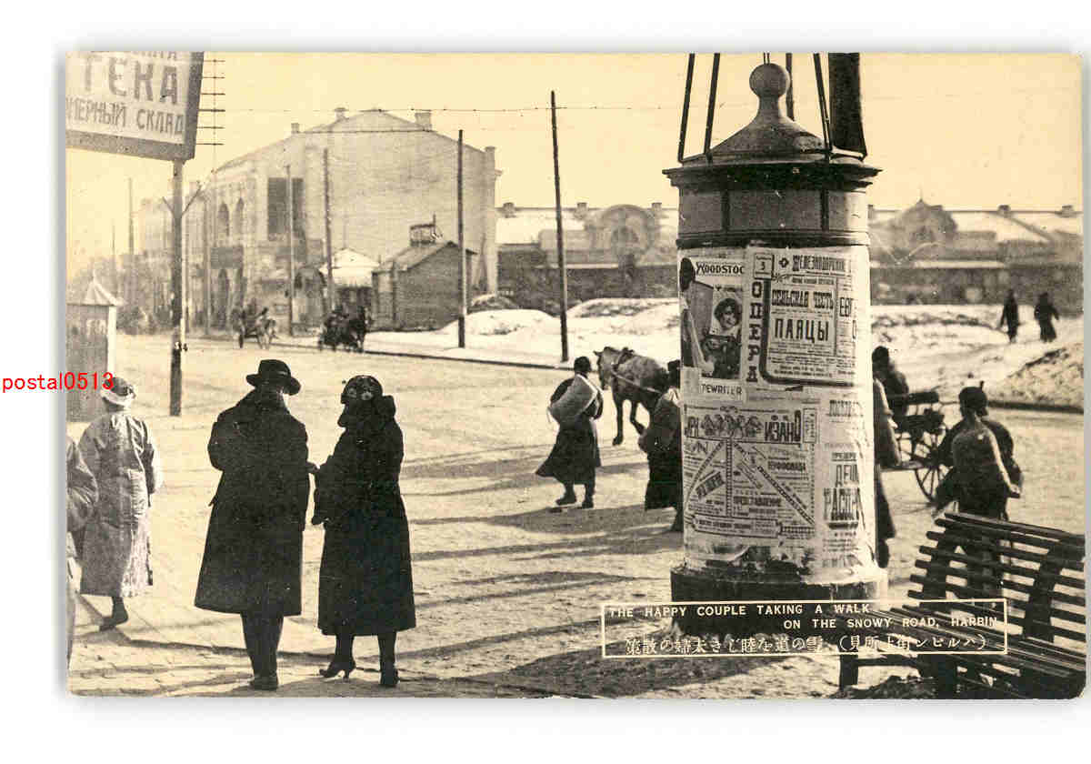満州 ハルピン街上所見 雪の道を睦じき夫婦の散策 *傷み有り