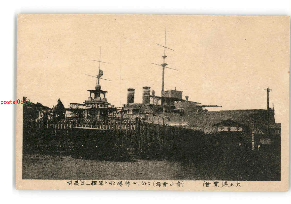 大正博覧会 青山会場 に於ける葬場殿と軍艦三笠模型 *傷み有り