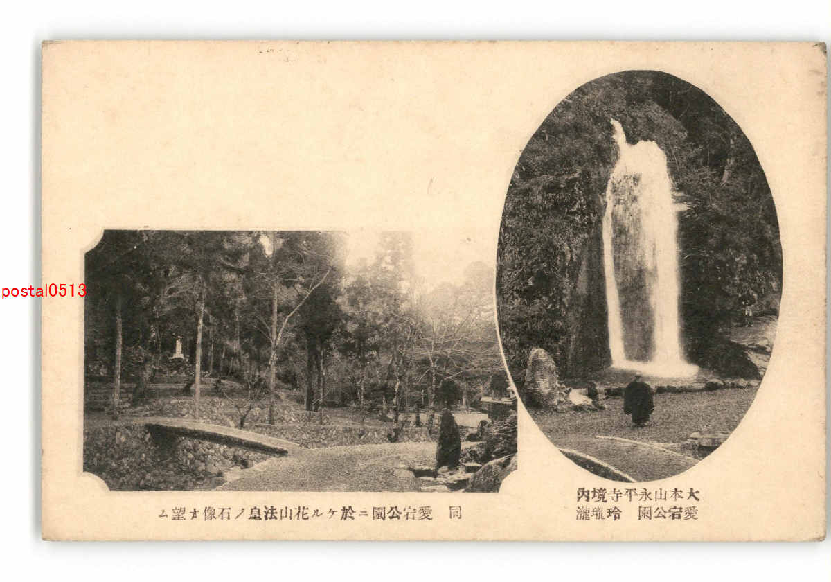 福井 大本山永平寺境内 愛宕公園 玲瓏瀧 同 愛宕公園に於ける花山法皇の石像を望む *傷み有り