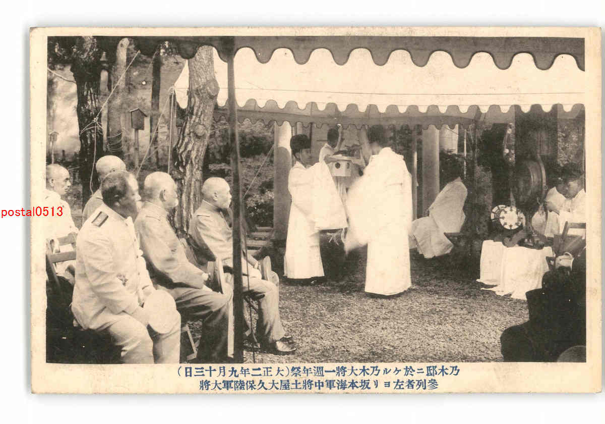 乃木邸に於ける乃木大将一周年祭 参列者左より坂本海軍中将土屋大久保陸軍大将 *傷み有り