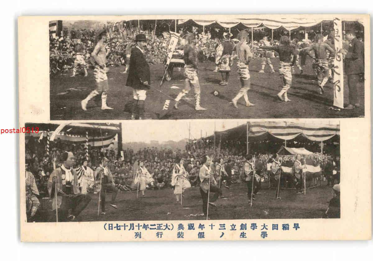 早稲田大学創立30年祝典 大正2年10月17日 学生の仮装行列 *傷み有り