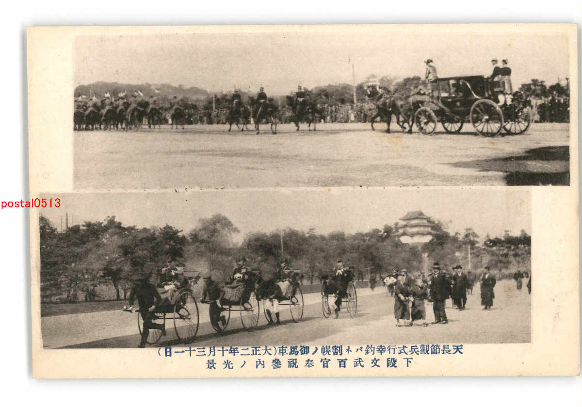 天長節観兵式行幸釣バネ割幌の御馬車 大正2年10月31日 下段文武百官奉祝参内 *傷み有り