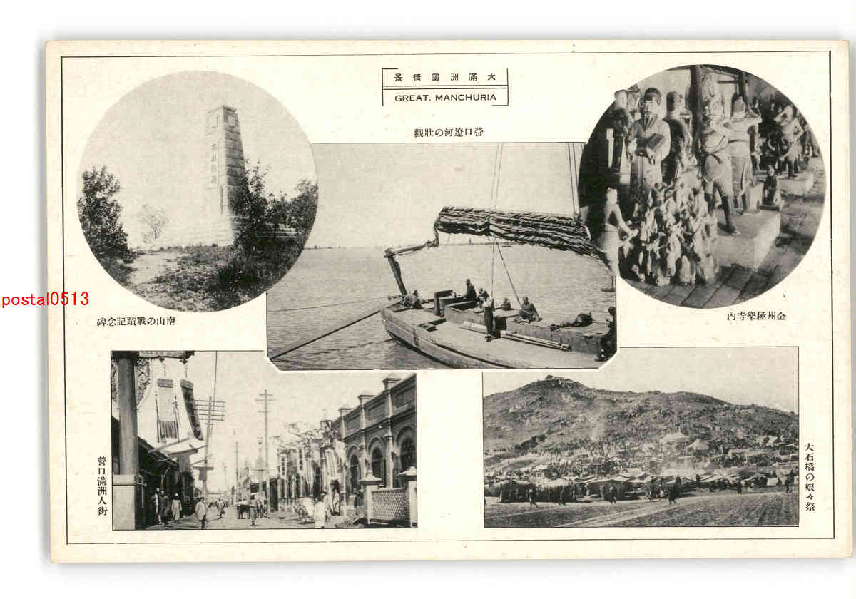 満州 大満洲国情景 南山の戦蹟記念碑 営口遼河の壮観 金州極楽寺内 営口満洲人街