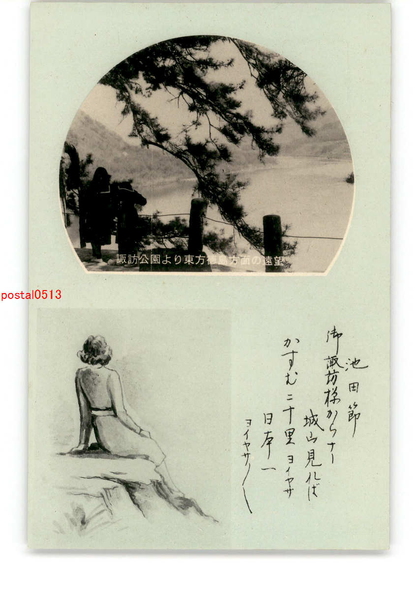 長野 諏訪公園より東方徳島方面の遠望 *傷み有り