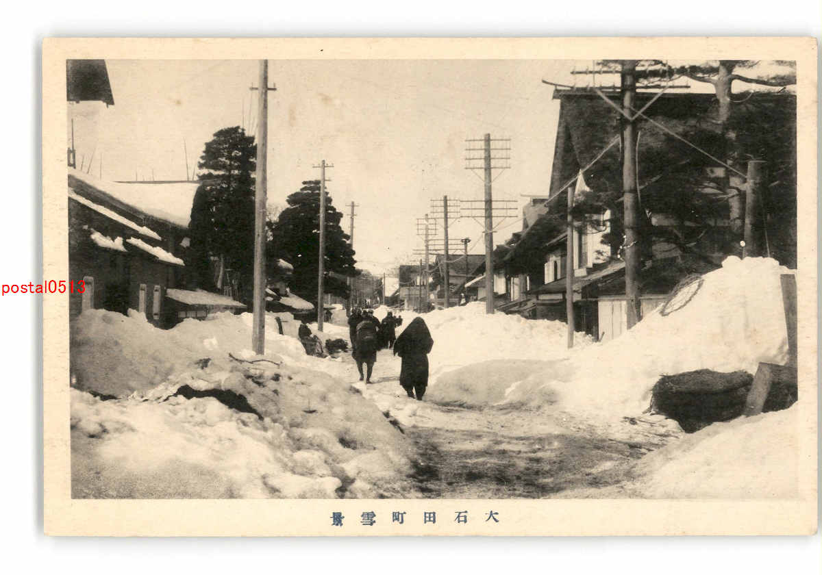 山形 羽前 雪中の大石田市街 *傷み有り