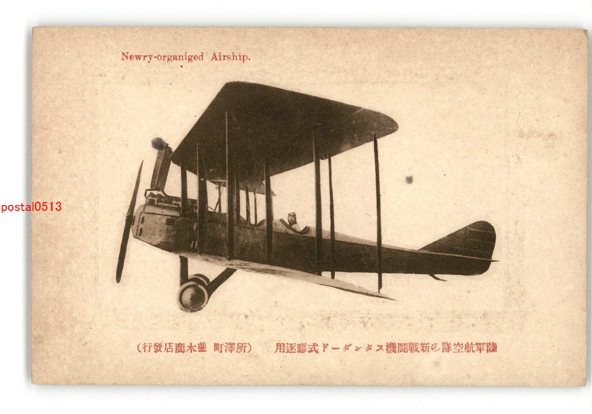 飛行機絵葉書 陸軍航空隊の百馬力制式軍用飛行機