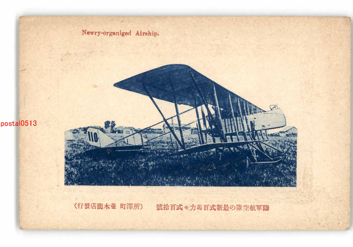 飛行機絵葉書 陸軍航空隊の最新式百馬力モ式110号