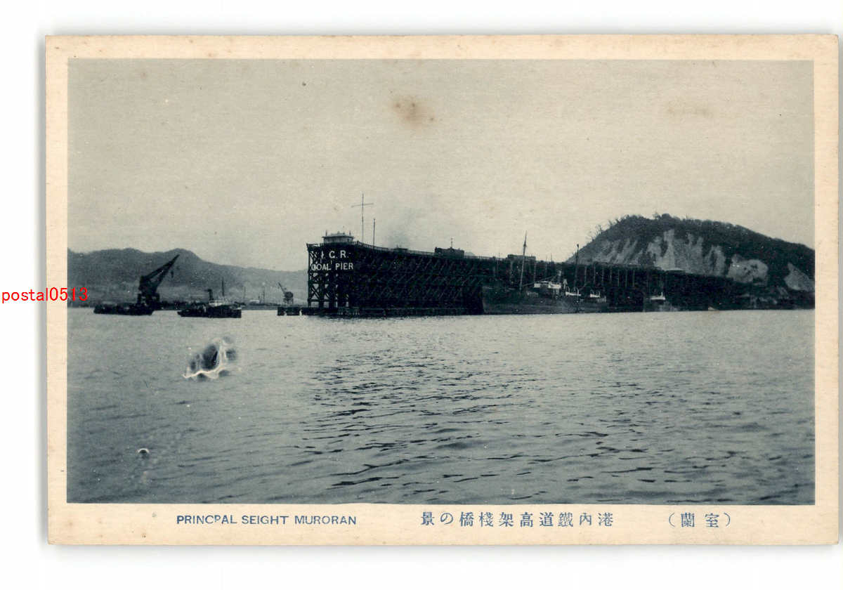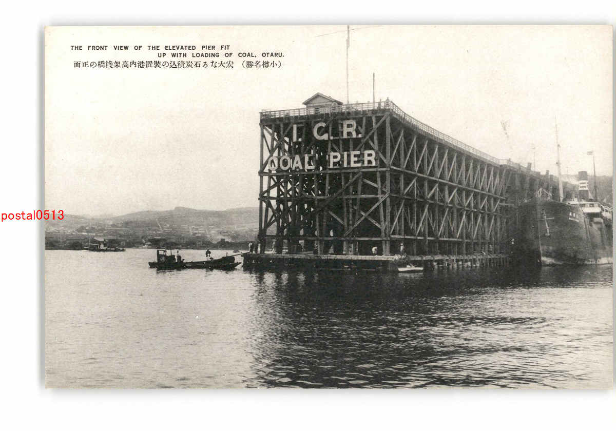 北海道 小樽名勝 宏大なる石炭積込の装置港内高架桟橋の正面 *傷み有り