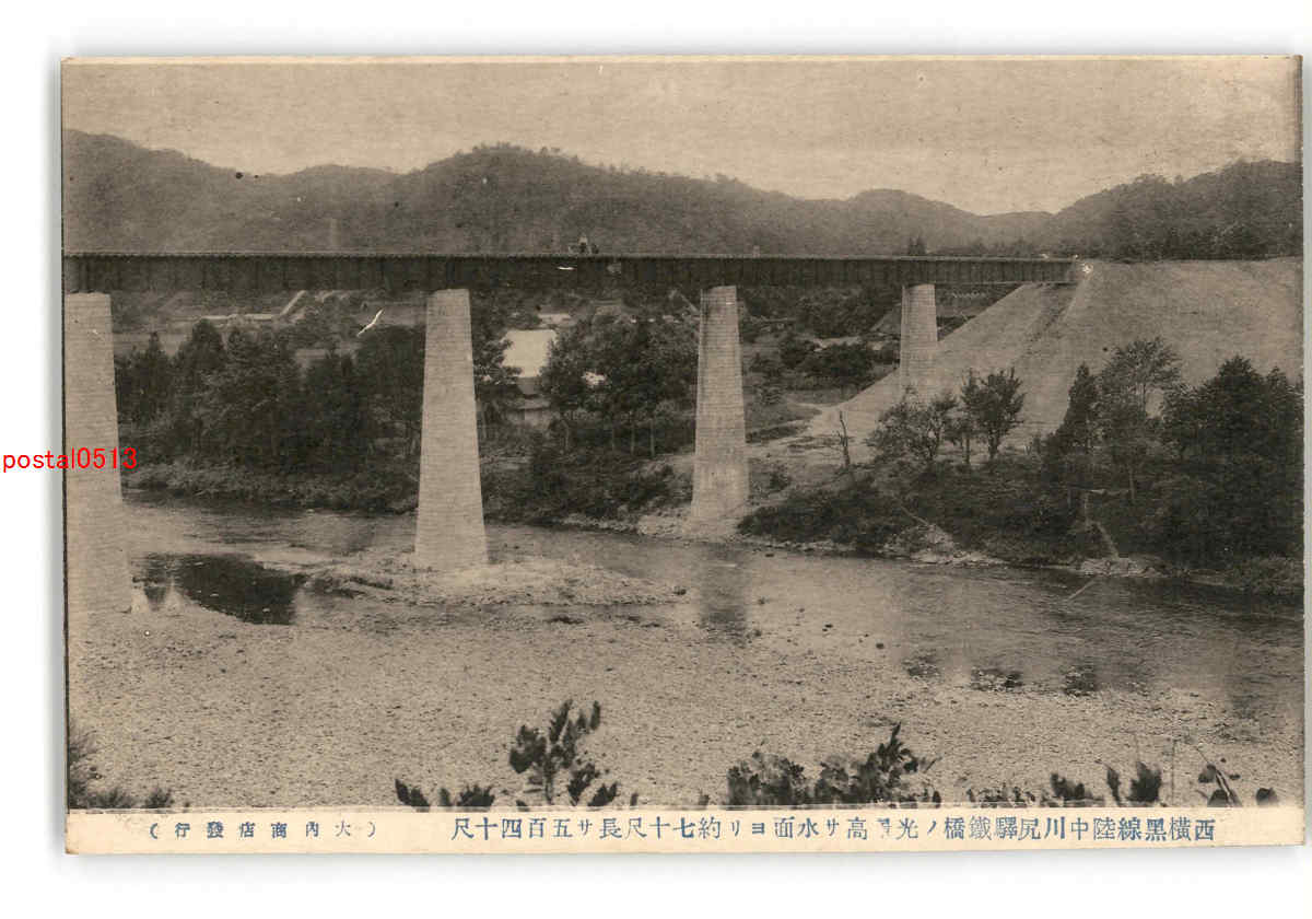 岩手 西横黒線陸中川尻駅鉄橋の光景高さ水面より約70尺長さ540尺 *傷み有り