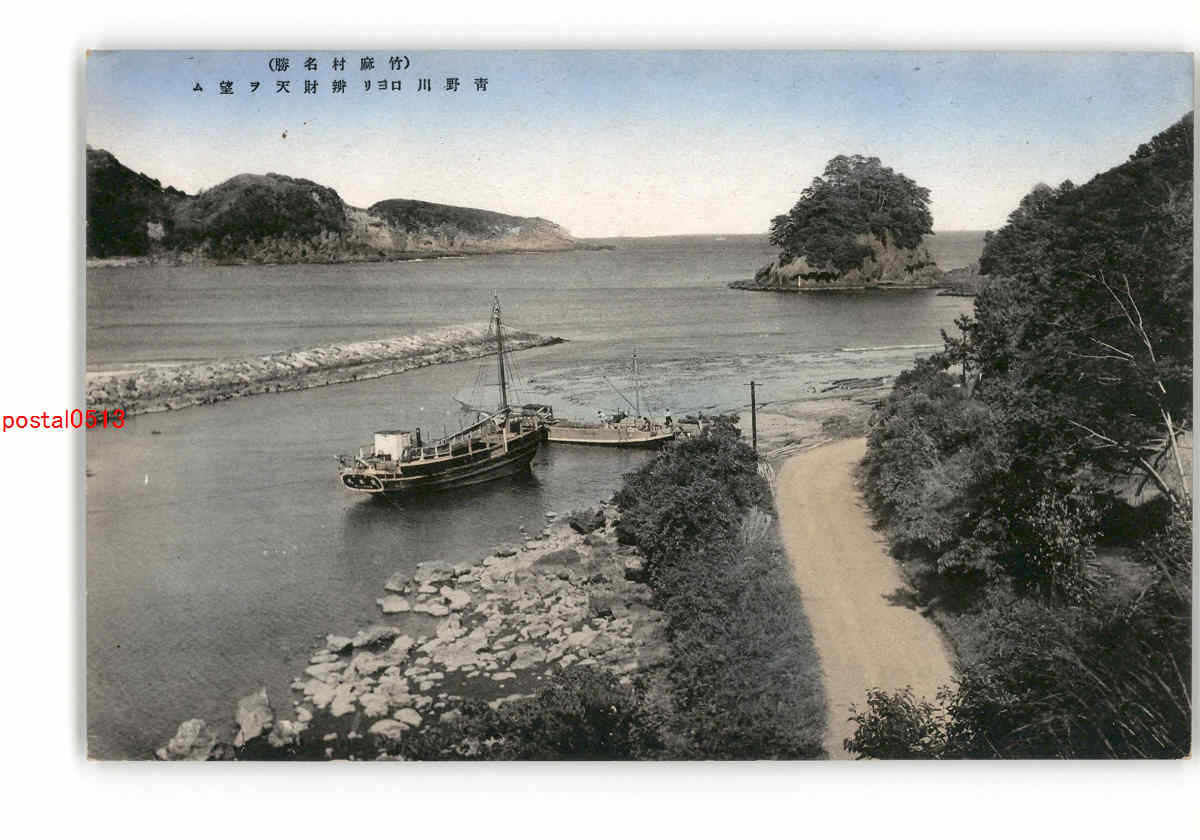 静岡 竹麻村名勝 青野川口より弁財天を望む *傷み有り