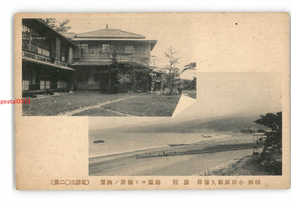 神奈川 相州 小田原新久海岸 藤館 庭園より海岸の眺望 *傷み有り