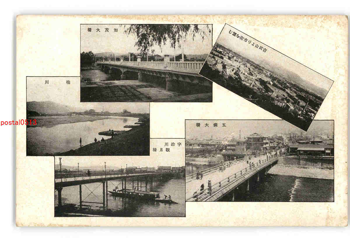 京都 吉田山より市街を望む 加茂大橋 桂川 宇治川観月橋 五條大橋 *傷み有り