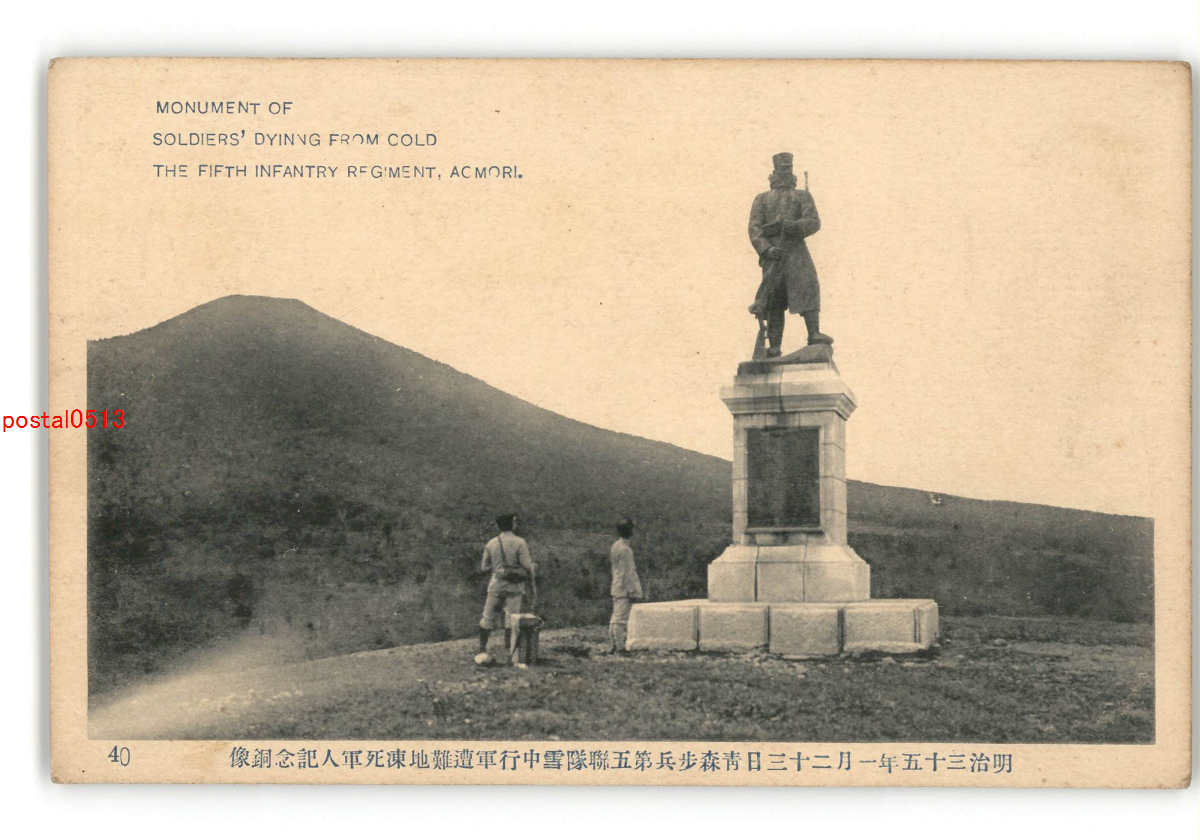 青森 明治35年1月23日青森歩兵第5連隊雪中行軍遭難地凍死軍人記念銅像 *傷み有り