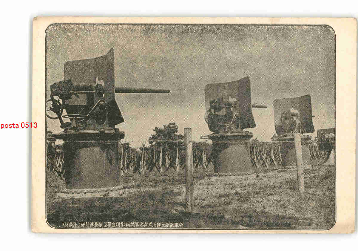 陸軍凱旋大観兵式紀念宮城前配列鹵獲品 加農速射砲と小銃林 *傷み有り