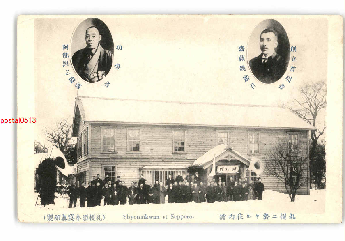 北海道 創立首唱者 齋藤親広君 功労者 阿部与之助翁 札幌に於ける荘内館 *傷み有り
