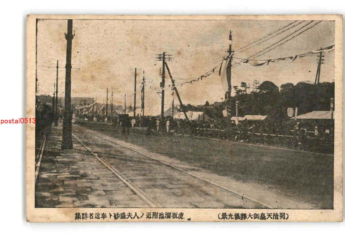 東京 明治天皇御大葬儀光景 赤坂溜池附近の人夫盛砂と奉送者群集 *傷み有り