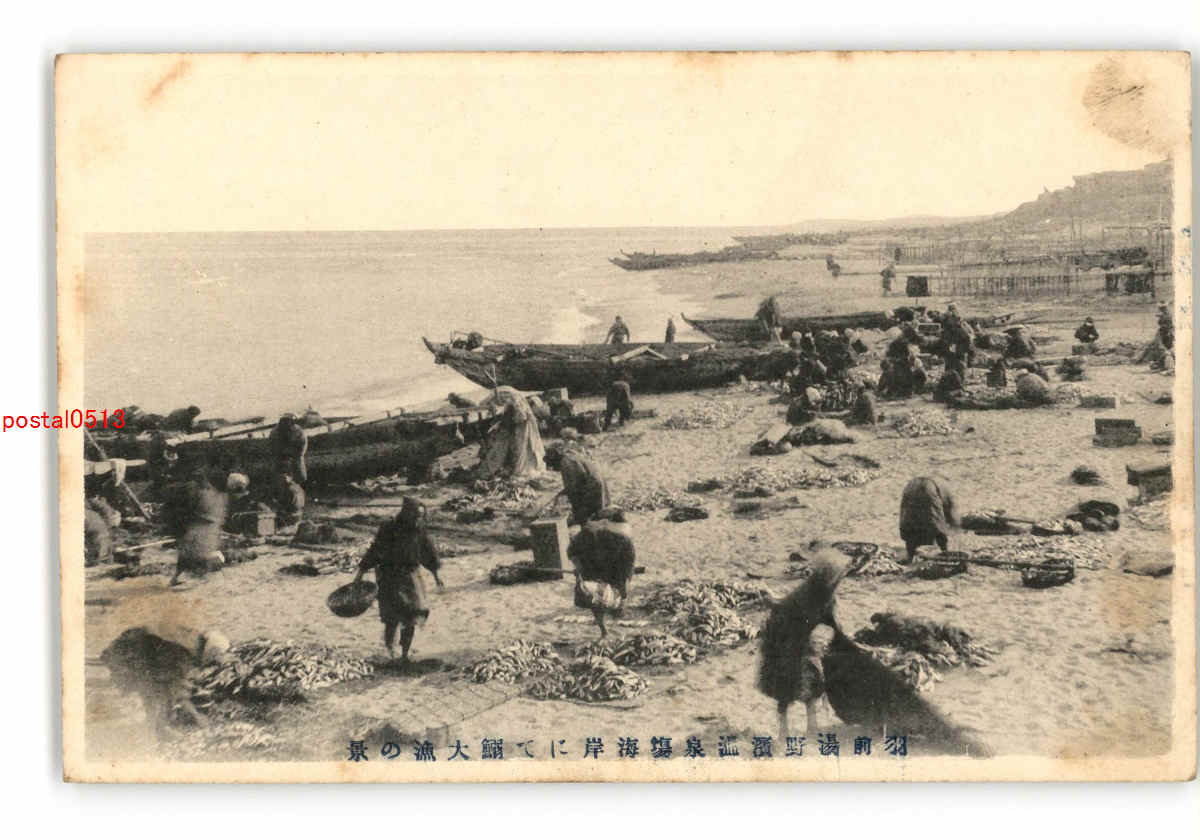山形 羽前湯野濱温泉場海岸にて鰯大漁の景 *傷み有り