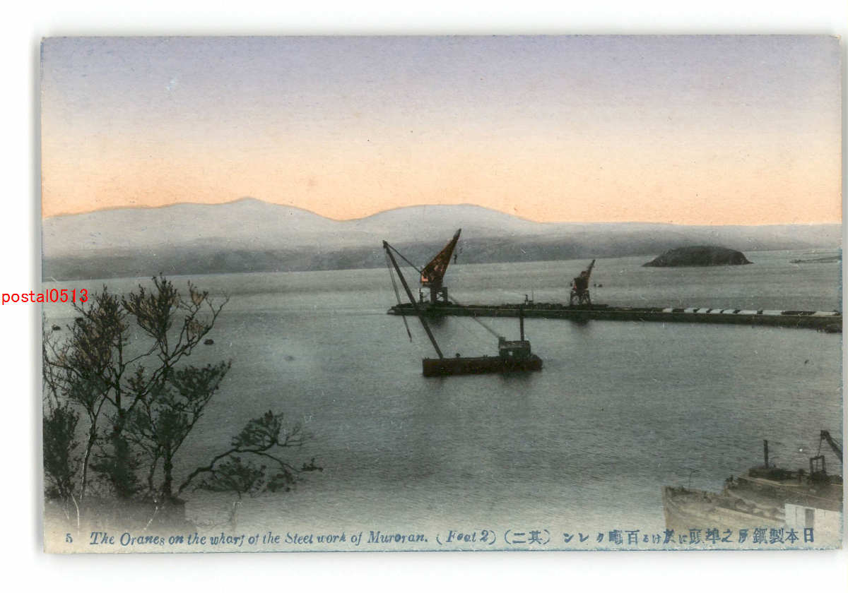 北海道 手彩色 室蘭 日本製鋼所の埠頭に於ける百噸クレン その2 *傷み有り