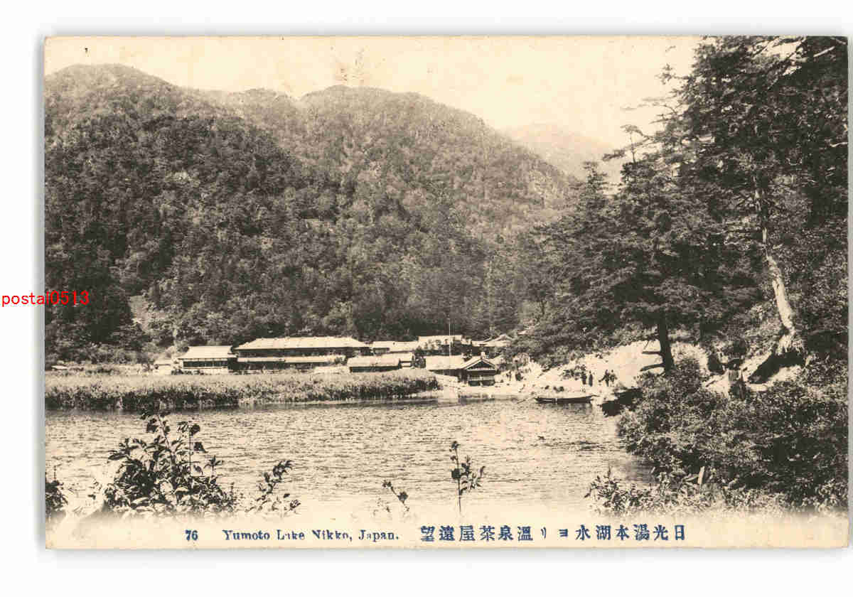 栃木 日光湯本湖水より温泉茶屋遠望 *傷み有り