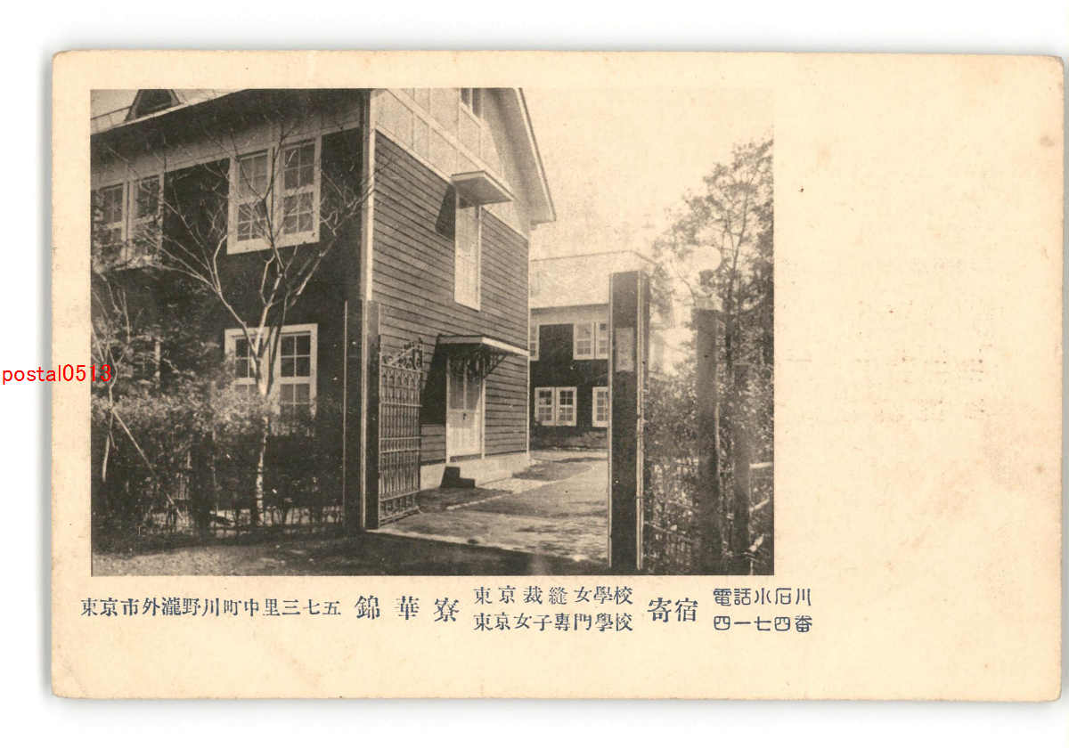 東京 瀧野川町中里 錦華寮 東京縫製女学校 東京女子専門学校 寄宿 *折れ有り *傷み有り
