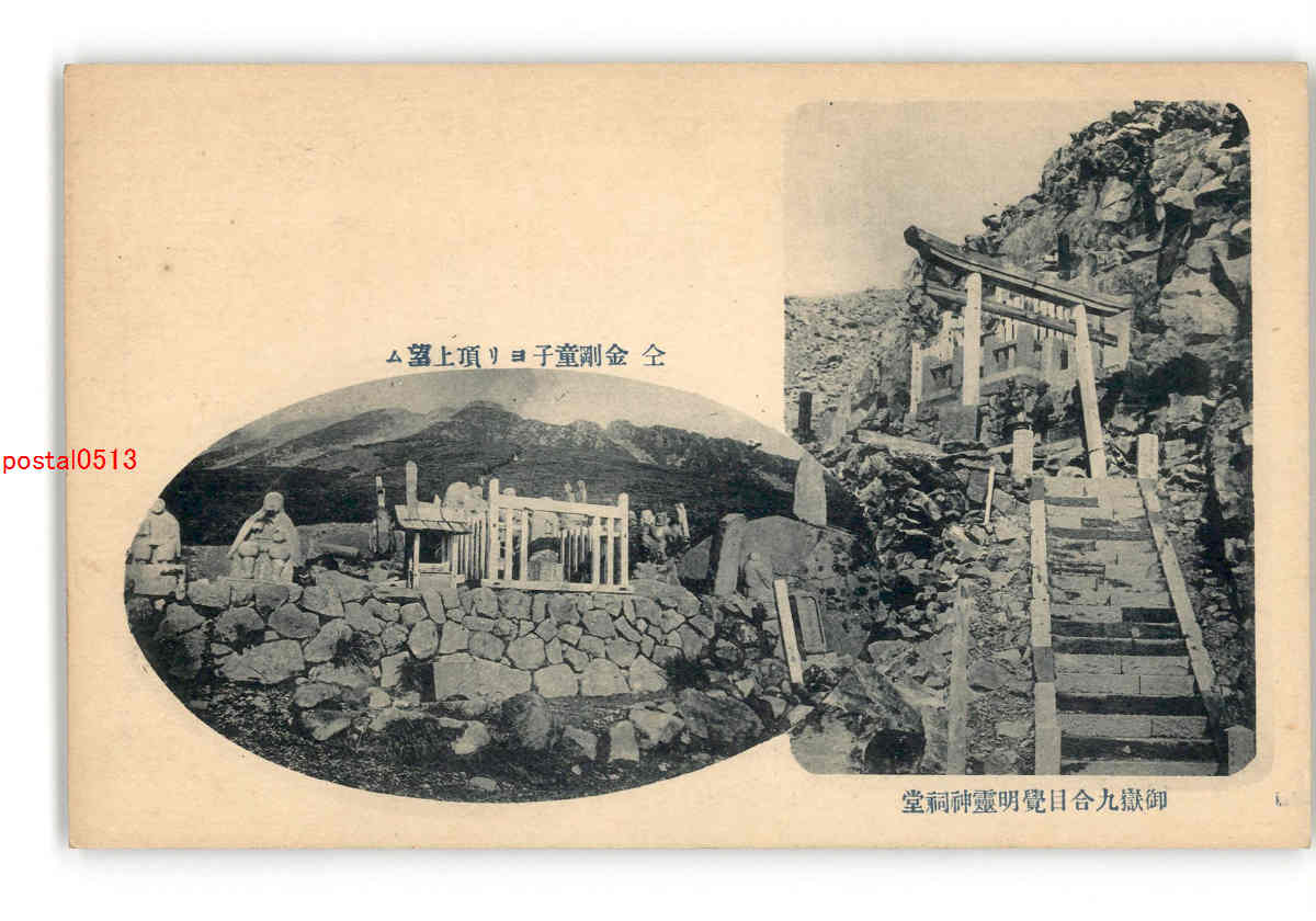 御嶽九合目覚明霊紙祠堂 同金剛童子より頂上望む *傷み有り