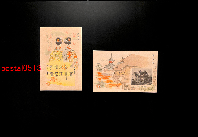 京都 大津家旅館絵葉書 袋付2枚 *傷み有り