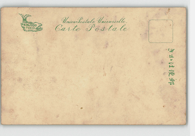 水面に立つ建物と藤 手彩色 *傷み有り