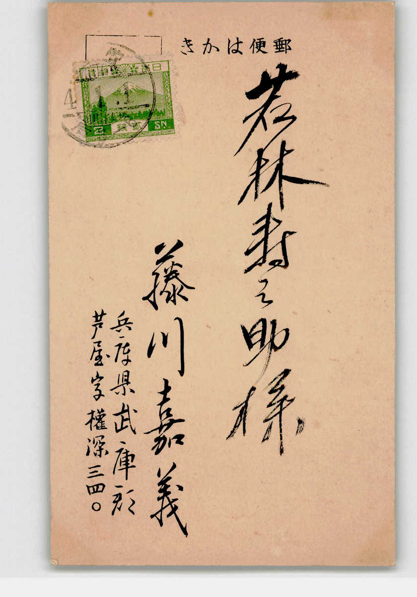 趣味人絵葉書 木版アート 藤川嘉義 巳年年賀状 蛇 *傷み有り