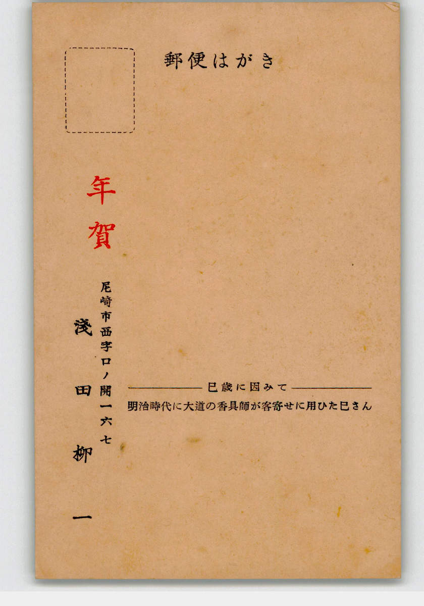 趣味人絵葉書 木版アート 淺田柳一 巳年年賀状 蛇 *傷み有り