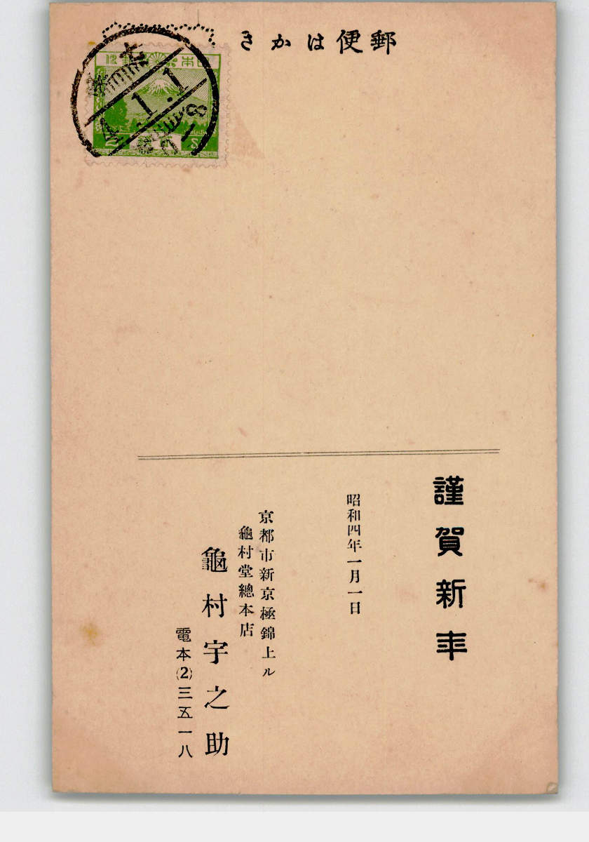 趣味人絵葉書 木版アート 亀村宇之助 蛇と亀 *傷み有り