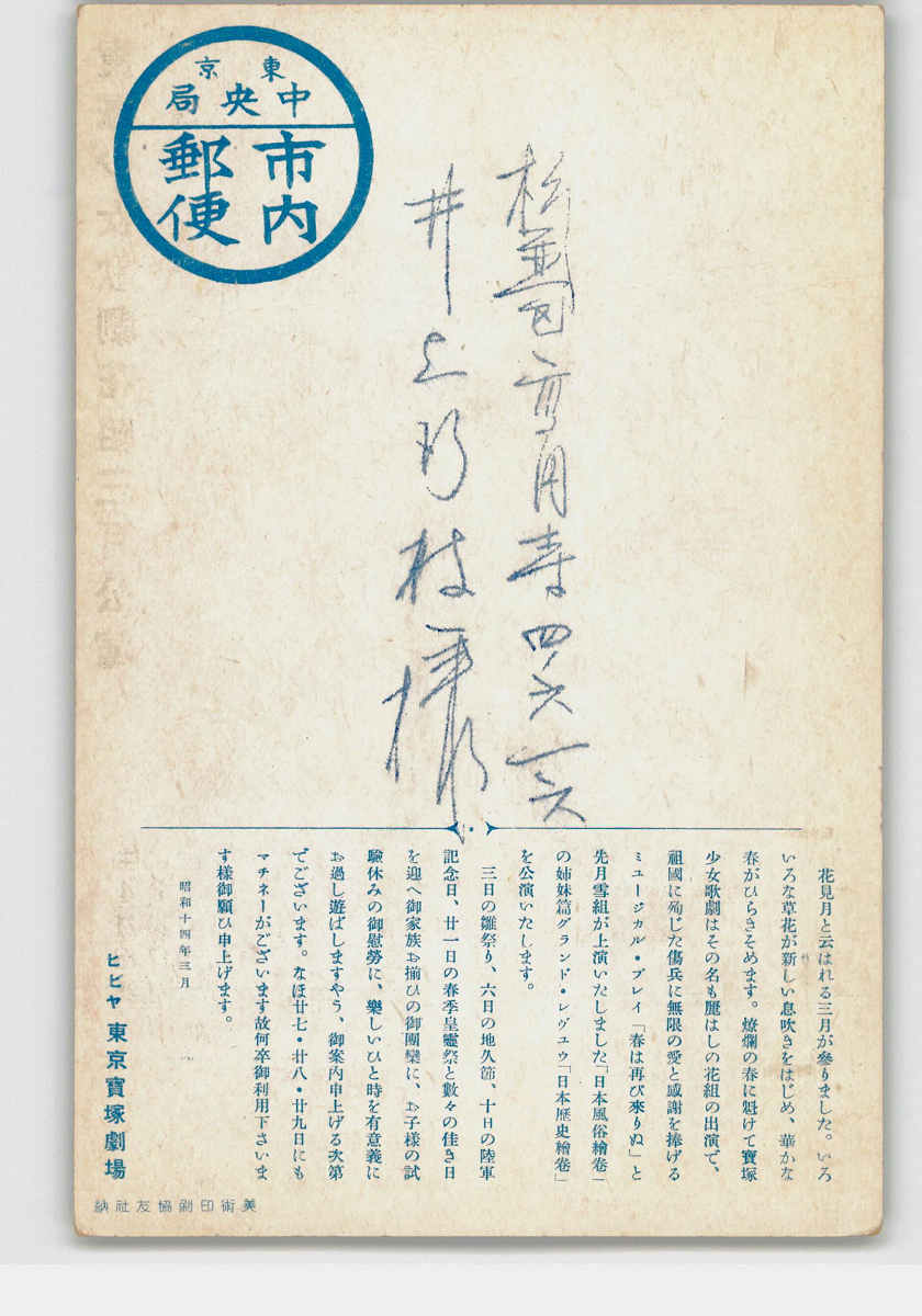 広告絵葉書 宝塚少女歌劇講演 武田のソボリン *傷み有り