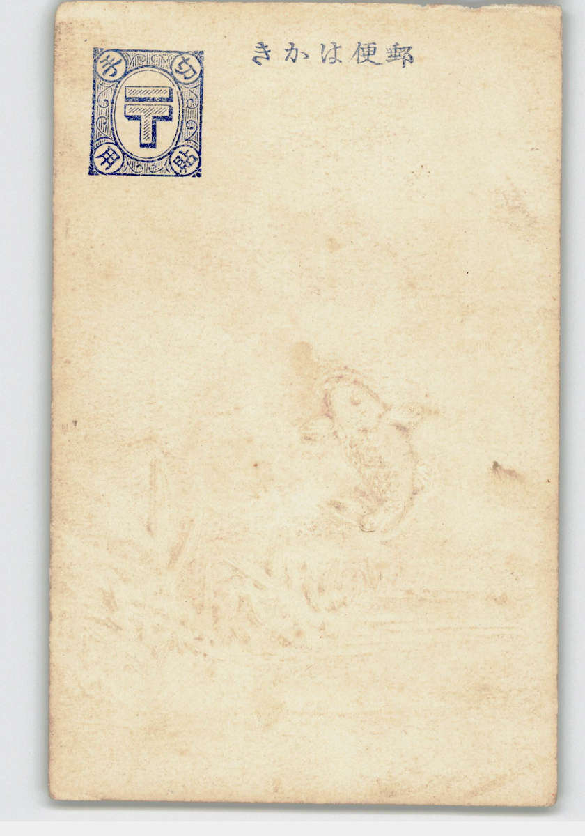 魚アート絵葉書 水面から跳びはねる魚 エンボス *傷み有り