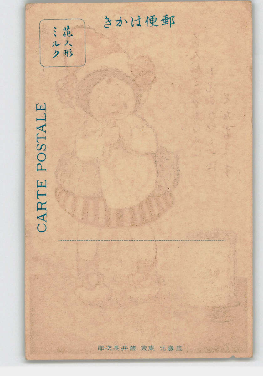 広告絵葉書 花人形ミルク 泣く少女 *傷み有り