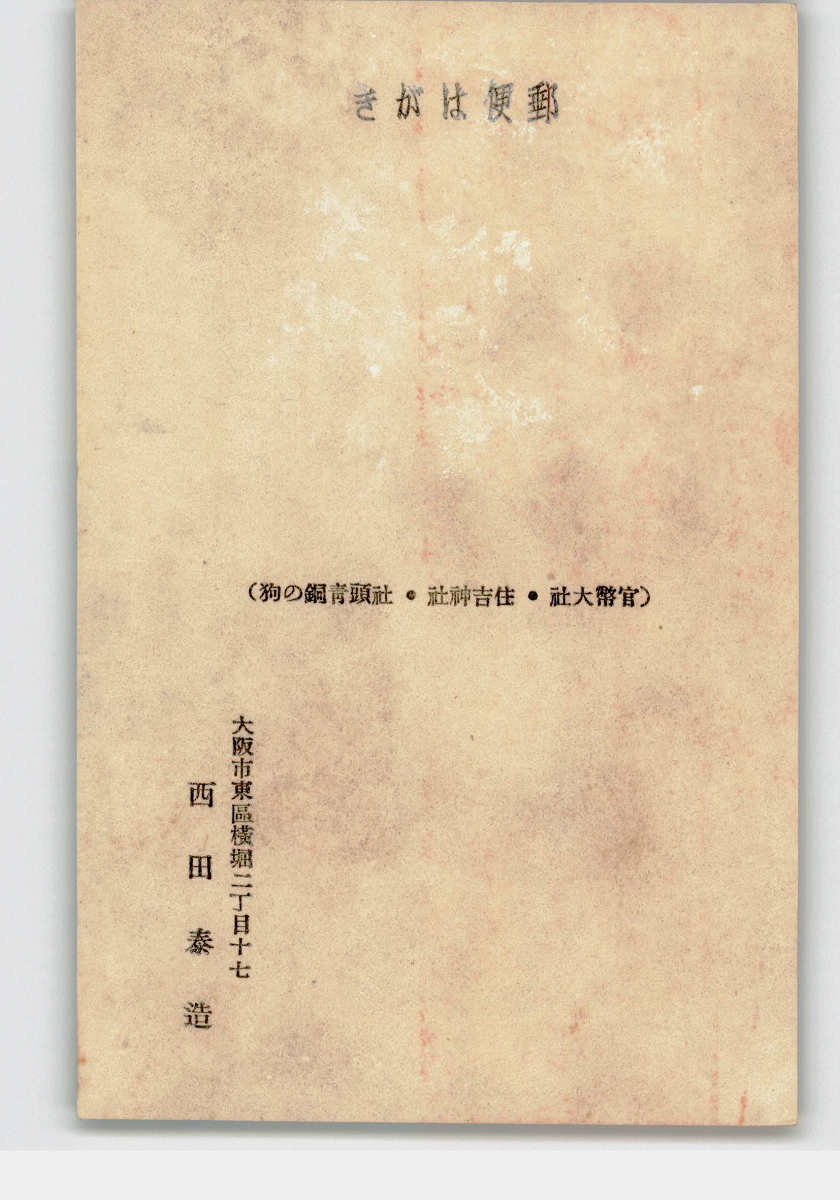 趣味人絵葉書 木版アート 西田泰造 戌年年賀状 狛犬 *完全剥離有り注意 *傷み有り