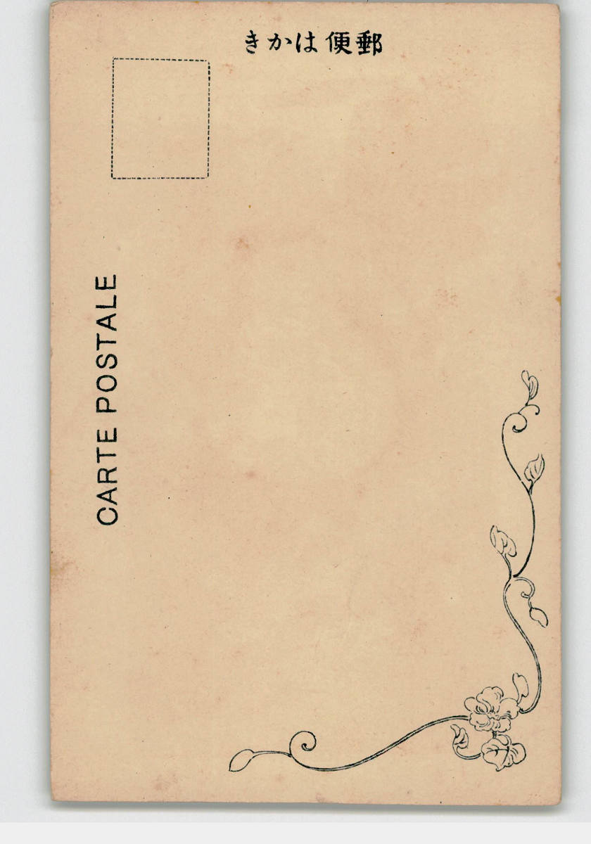 お多福と鬼?アート絵葉書 *傷み有り