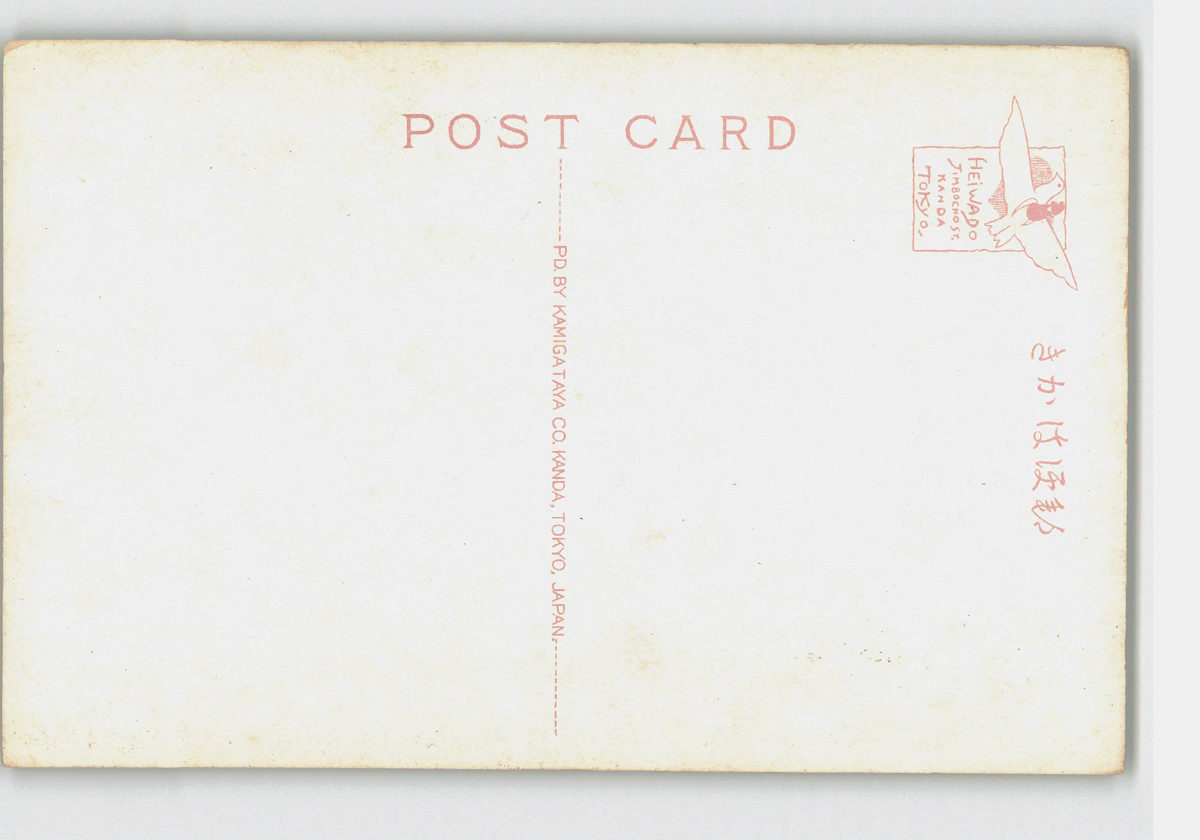 平井房人 草原で編み物少女 アート絵葉書 *傷み有り