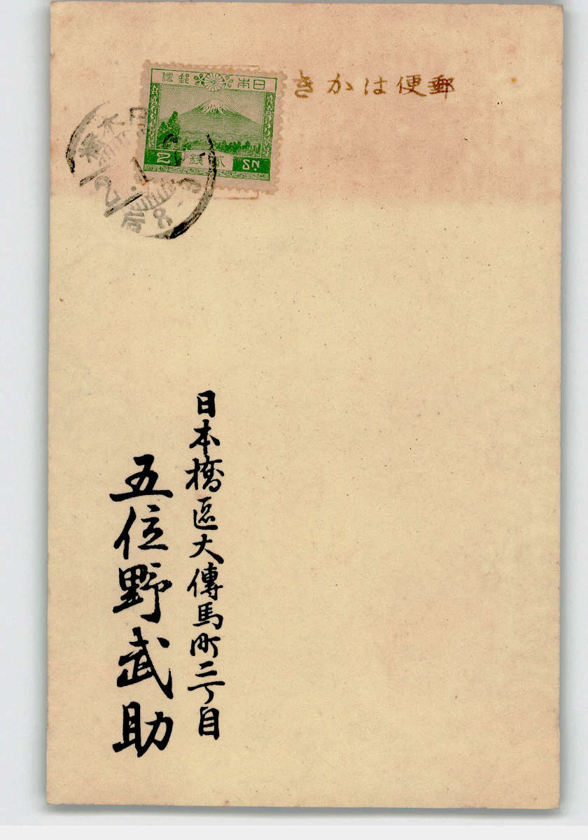 趣味人絵葉書 木版アート 五位野武助 兎と狸 年賀状アート絵葉書 *傷み有り