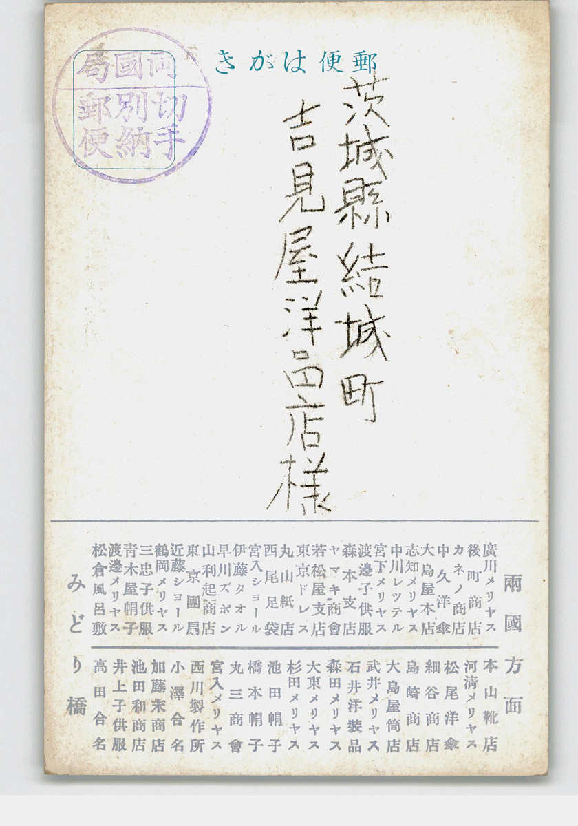 東京 広告絵葉書 日本橋 横山町通奉仕会 スキースケートアート絵葉書 *傷み有り