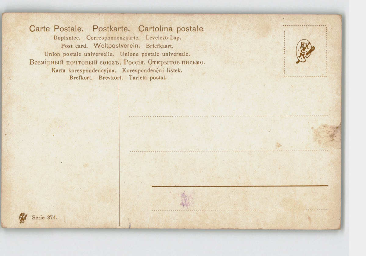 犬絵葉書 雪山で休憩する猟師と猟犬 *傷み有り