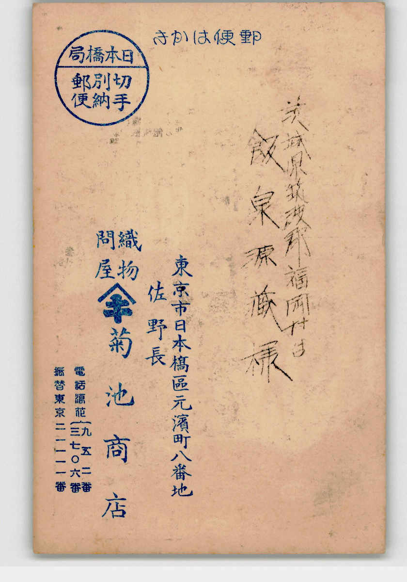 広告絵葉書 織物問屋 菊池商店 新柄宣伝特売会 *傷み有り