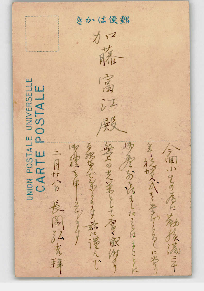 記念撮影絵葉書 長岡弘吉 *傷み有り